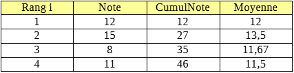 Vous avez obtenu 4 notes : 12, 15, 8, 11