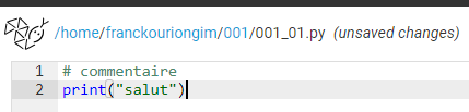 Derrière les chevrons (>>>), il est aussi possible d'ajouter du code qui ne sera pas conservé dans le fichier en cours. Par exemple tapez print(2), exécutez.