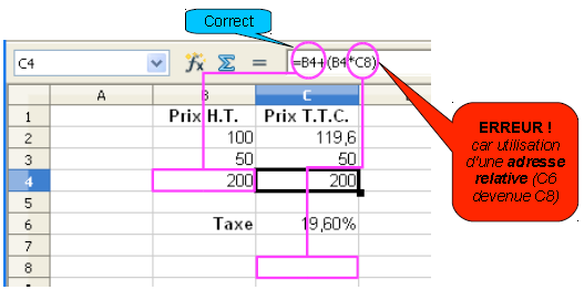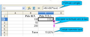Si la cellule référencée ne bouge pas avec la formule recopiée, il faut la référencer en absolu ou lui assigner un nom[1].